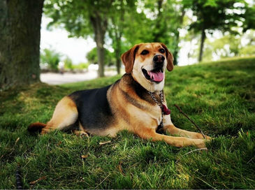 Sandy is a 5-year-old Beagle and German Shepherd who loves to chase squirrels, watch what is happening from the balcony, and always protect her humans from the vacuum.